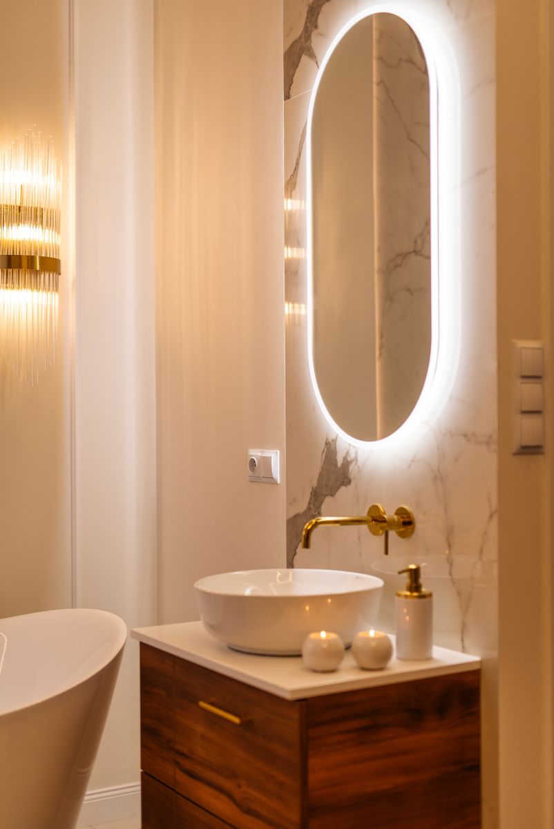 Wysokiej klasy limitowe oświetlenie, panele winylowe, glazura.